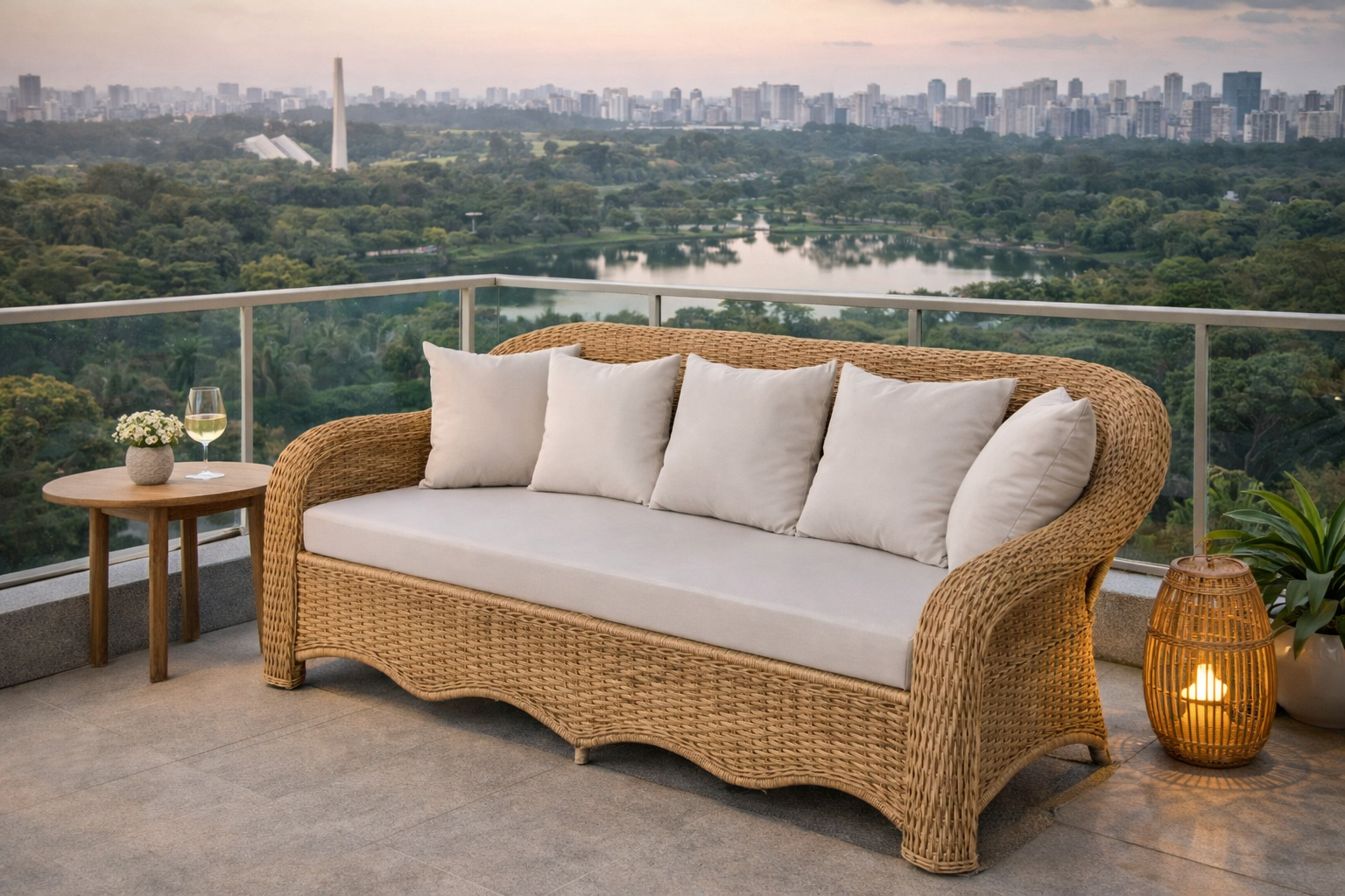 As fibras naturais sempre dão mais bossa em qualquer decoração! Lindo sofá em junco