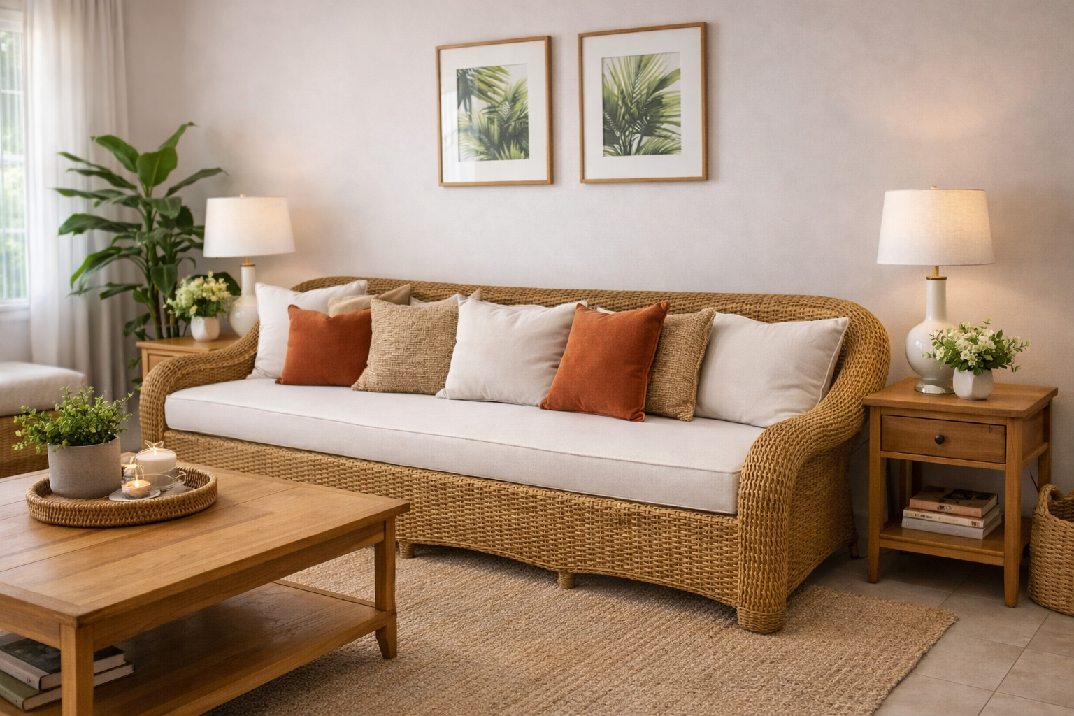 As fibras naturais sempre dão mais bossa em qualquer decoração! Lindo sofá em junco peça entregue montada, não nos responsabilizamos por içamento. ser uma adição charmosa para qualquer espaço! Fibras naturais realmente têm um toque especial que traz um ar mais acolhedor e elegante para a decoração.